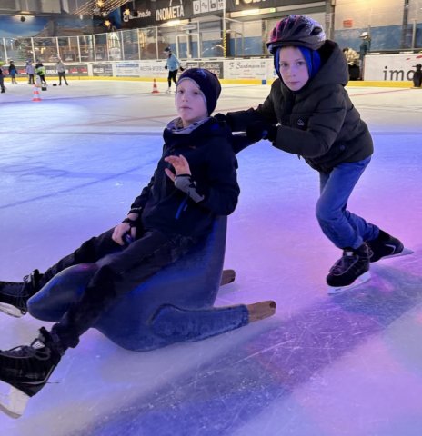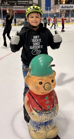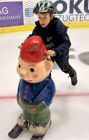 Zunächst waren die Schritte auf dem Eis noch etwas zögerlich. Mit Hilfsmitteln wie Pinguinen, Robben und Zwergen fanden ersten Gleitversuchen statt. Dabei sammelten die Kids schnell Erfahrungen, so dass ganz plötzlich diese Hilfsmittel nicht mehr nötig waren und fast alle Kinder frei über die Eisfläche liefen.